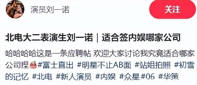 还有些网友留意到,她上个月还在网上为签约公司的事烦恼着,发帖求工作。平时活跃在社交平台上的动态,也都在不停地给自己打广告,看来根本就是没有背景的小演员,跟真正的白富美那样的人气少女差远了。